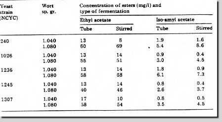 Deutlich wird hier die Abhängigkeit der Konzentration vom verwendeten Hefestamm. Dennoch ist ausschließlich mit der Wahl des Hefestammes keine ausreichend geringe Esterkonzentration zu erreichen (12).